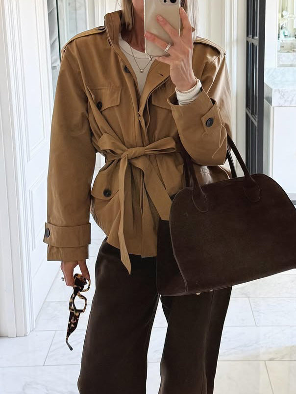 Fashionable Street-style Cropped Trench Coat