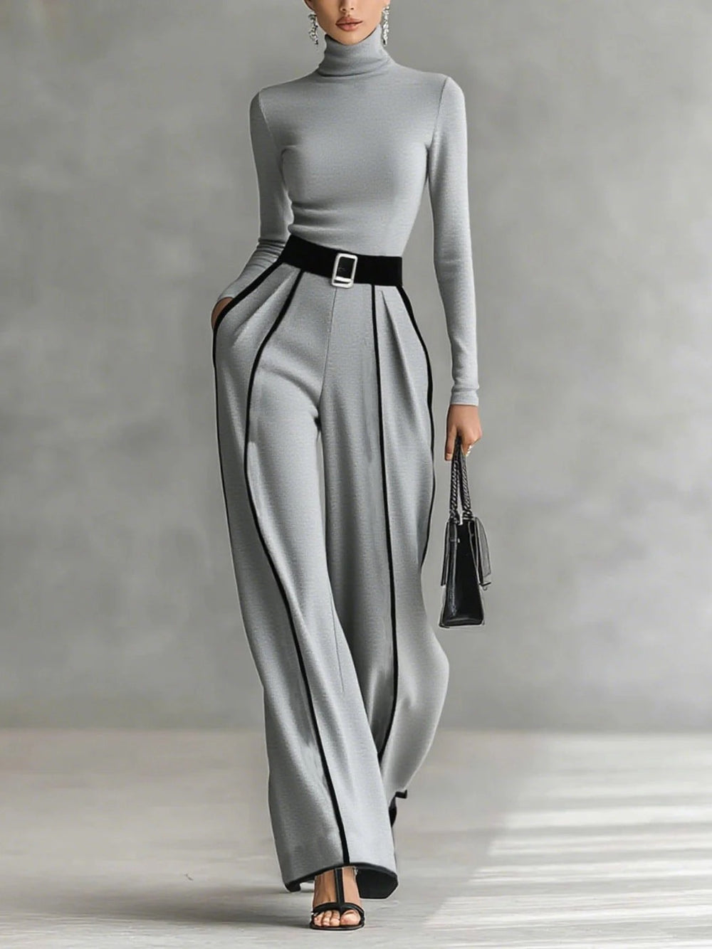 Elegant High Neck Slim Fit Long Sleeve Top Two-Piece Set