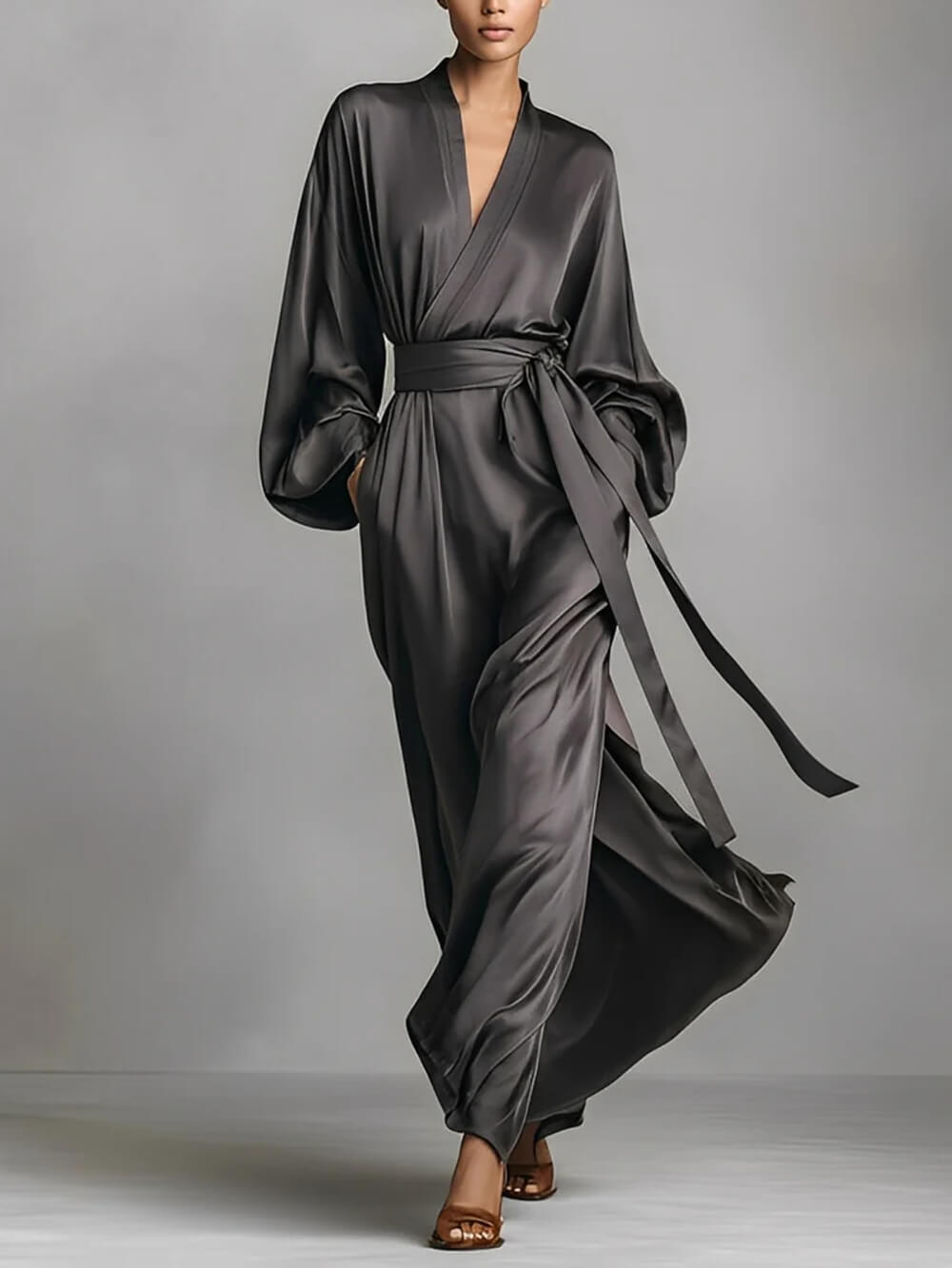 Delicate Satin Wrap V-Neck Maxi Dress