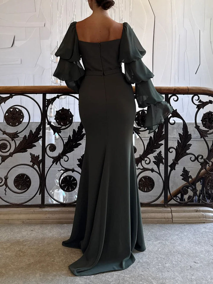Elegant Square Neck Evening Maxi Dress