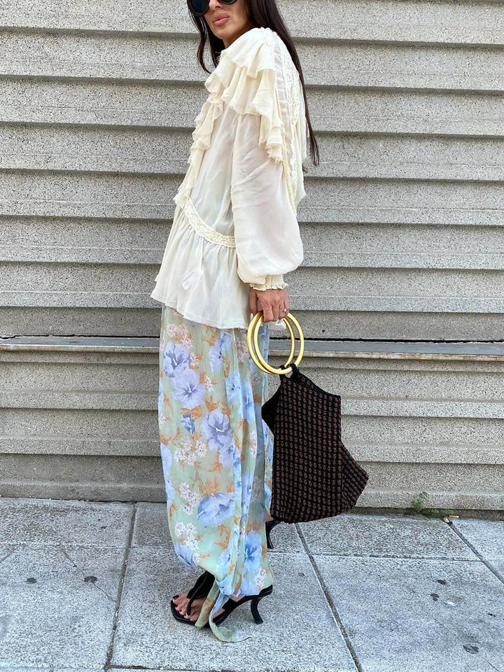 Boho Chiffon Floral Print Elastic Waist Tie-up Hem Balloon Pants– Perfect for beach walks or summer festivals, these breezy pants feature a floral chiffon design, comfy elastic waist with tie, and chic lantern legs for effortless boho style.