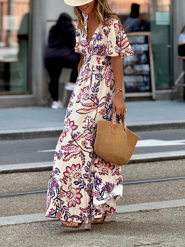 Elegant Floral Print A-Line Maxi Dress
