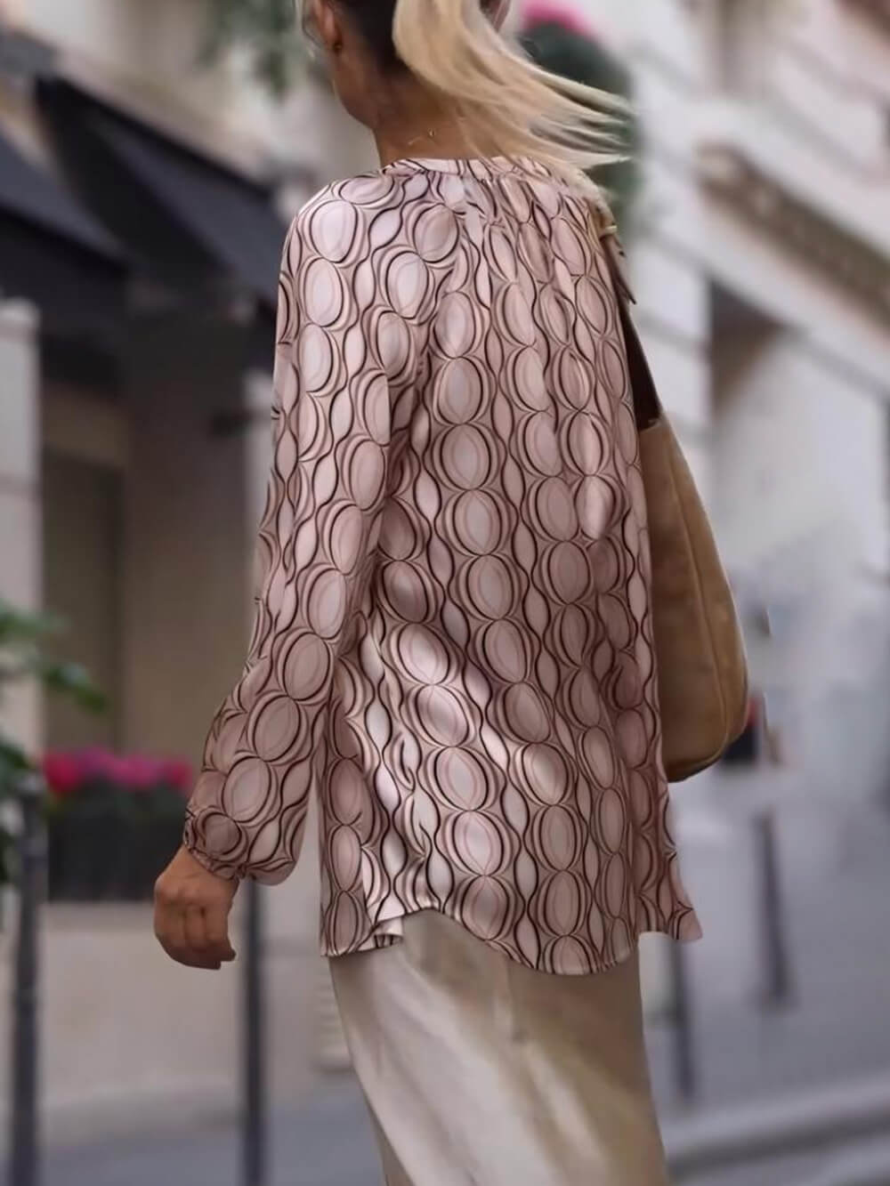 Retro Circle Print Charm Cuffs Loose Fit Shirt