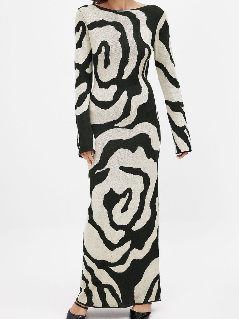 Elegant jacquard pailletter strikket maxi kjole