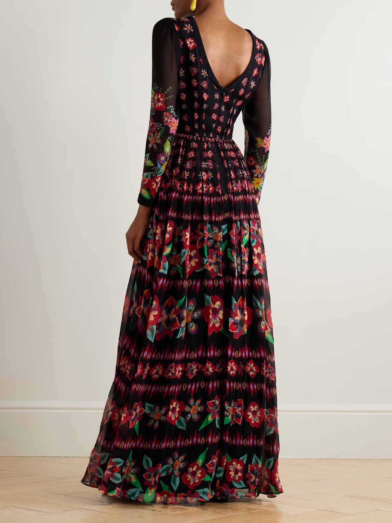 Exquisite Floral Print Pleated Maxi Dress