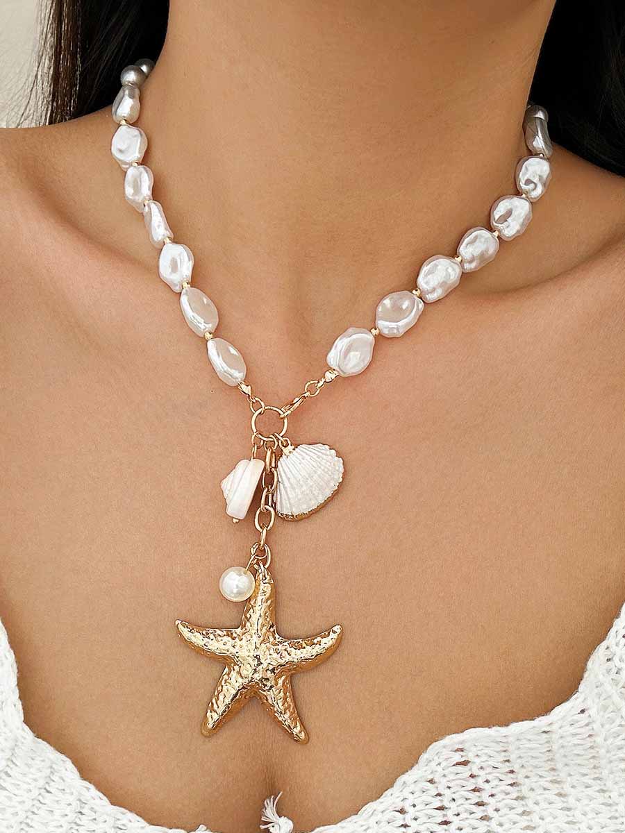 Our statement starfish shell pearl beach necklace is the perfect accessory to pair with a casual holiday outfit