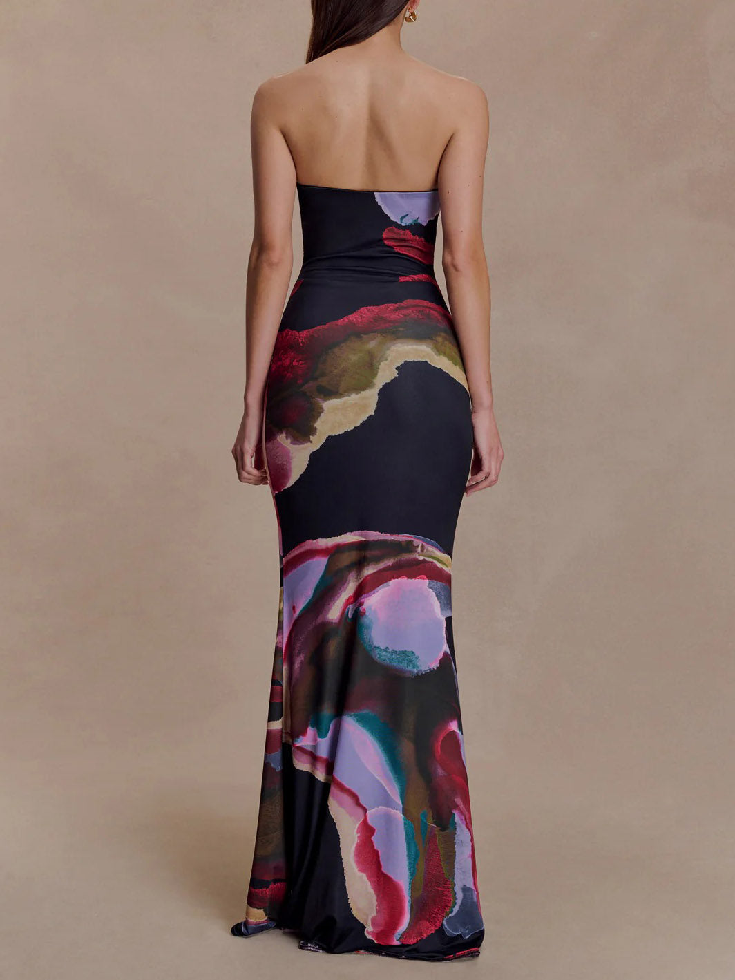 Exquisite Strapless Abstract Print Bodycon Maxi Dress