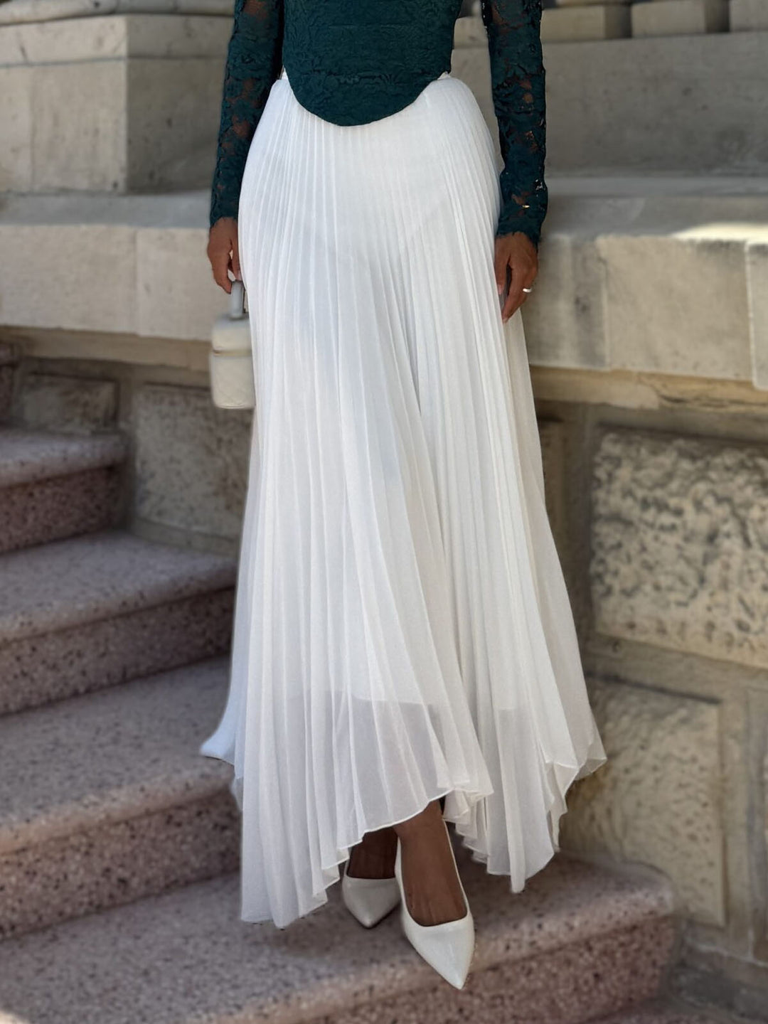 Sexy One-Shoulder Lace Panel Pleated Maxi Dress