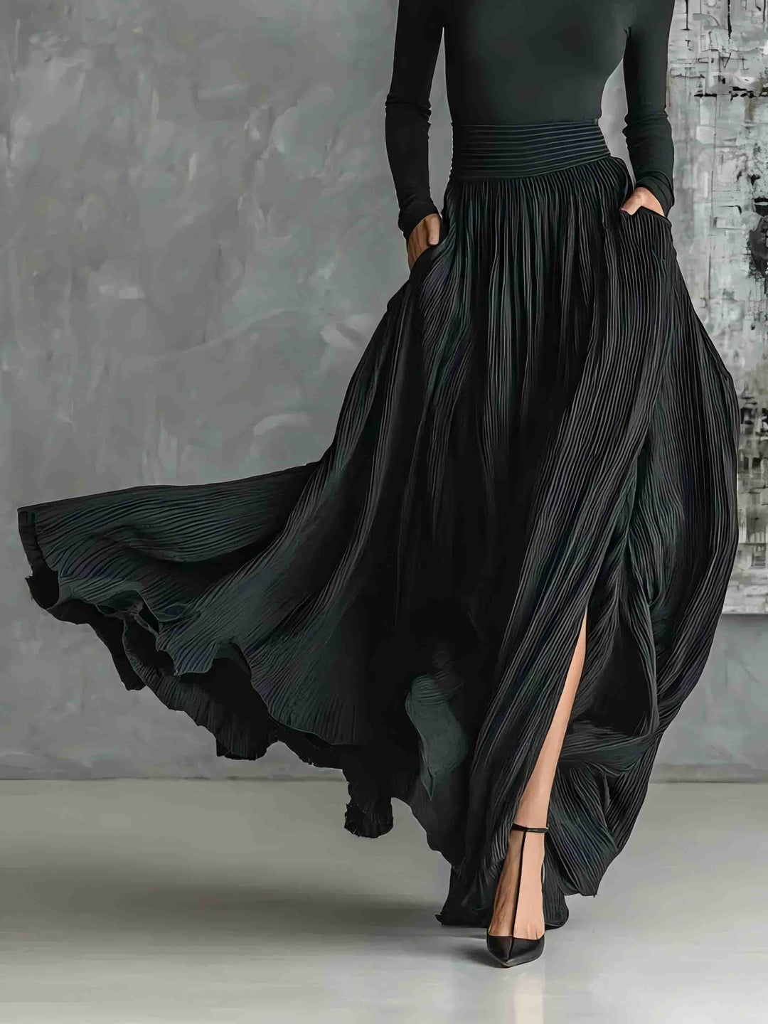 Fashion Satin High Rise Elastic Waist Flare Maxi Skirt
