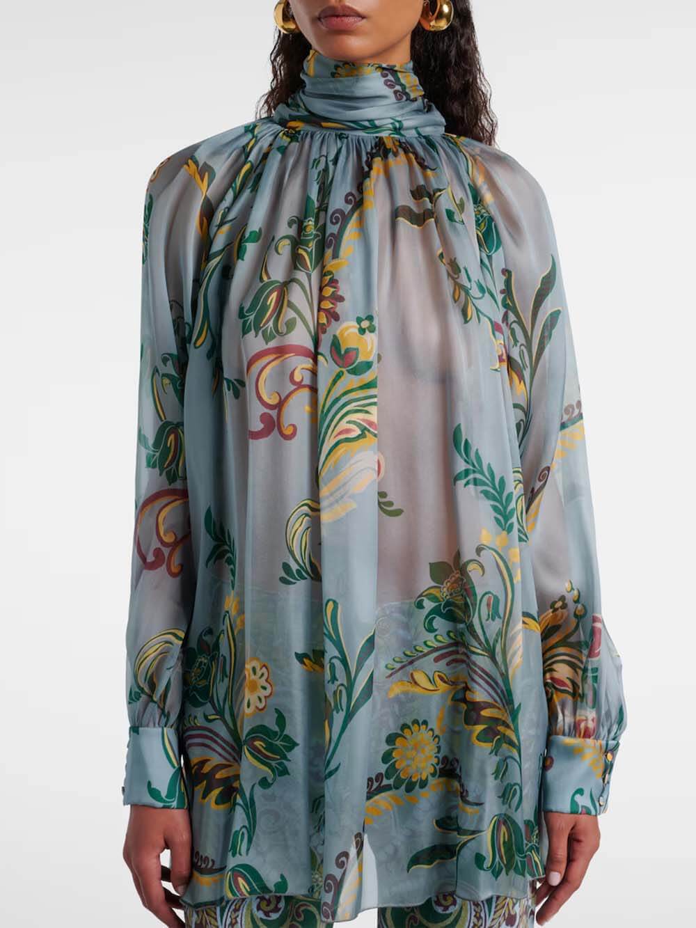 Exquisite Bohemian Ruffled Printed Chiffon Shirt