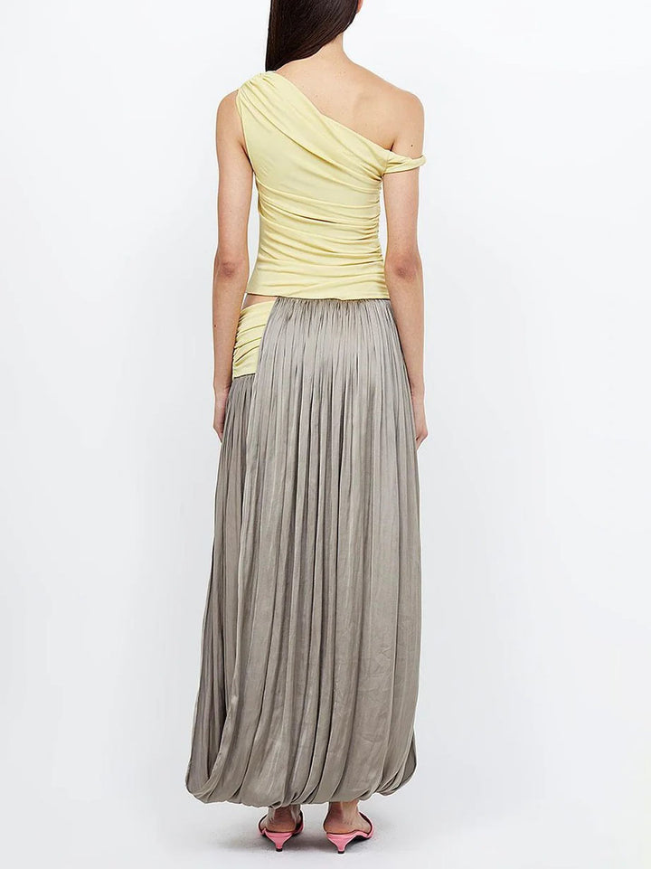 Elegant Boat Neck Pleated Maxi Dress – Graceful pleated design with a classic boat neckline, crafted from flowing fabric for an effortless silhouette. Perfect for garden parties or formal events, styled with delicate heels and minimal accessories for an elegant, refined appearance.