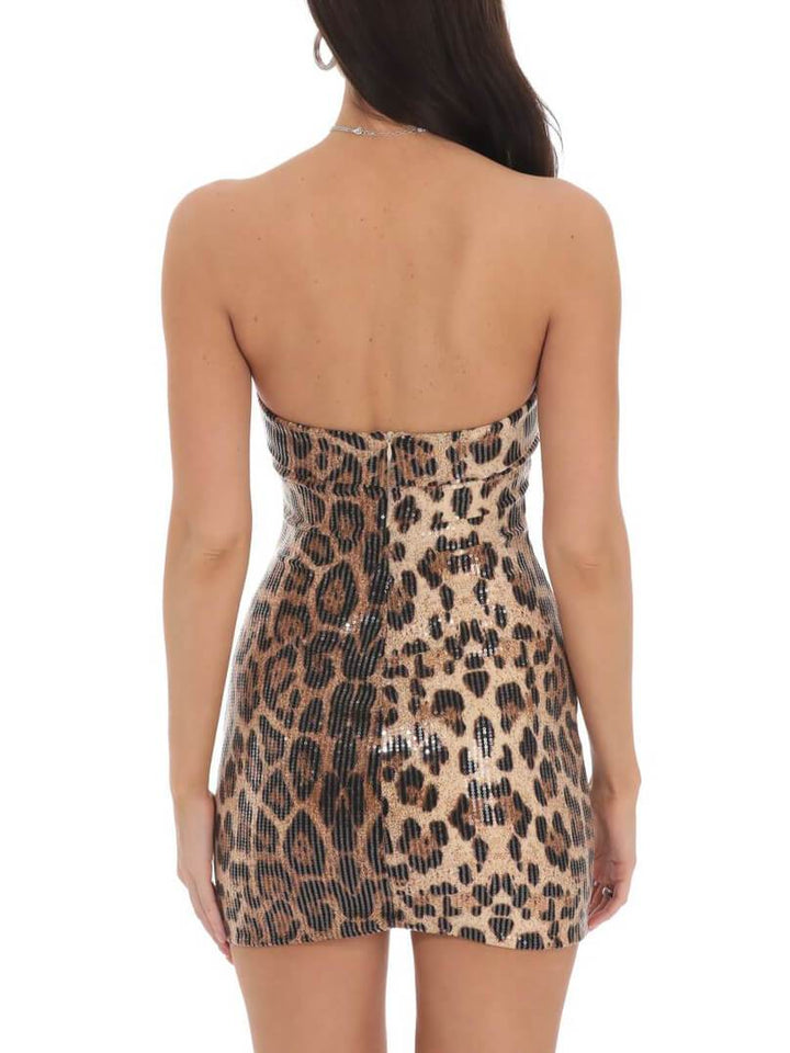 Μίνι φόρεμα με στράπλες παγιέτες λεοπάρ