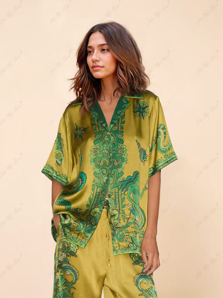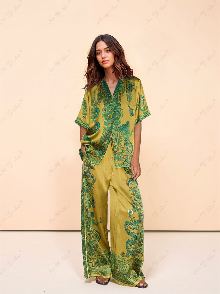 Μοναδικό σετ με κοντομάνικο φαρδύ πουκάμισο και ελαστικό παντελόνι με στάμπα