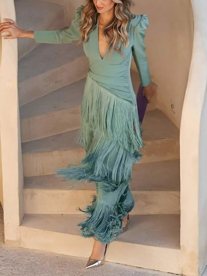 Designed with a refined V-neckline and graceful long sleeves, this shirt blends classic elegance with modern sophistication. The fluid fabric drapes beautifully, making it an ideal piece for both professional and dressy occasions.
