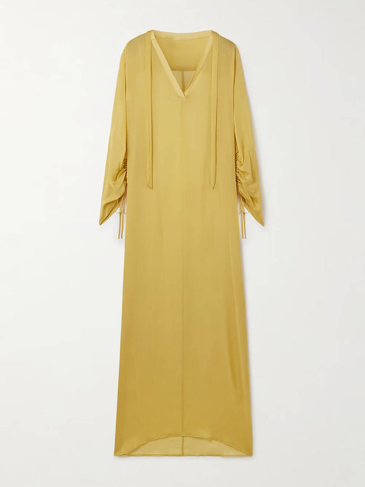 Effortlessly chic and luxuriously soft, our Casual Satin V-Neck Ruched Cuff Maxi Dress is the perfect blend of relaxed elegance and timeless style. Designed for comfort and versatility, this maxi dress is ideal for casual outings, weekend brunches, or laid-back evening events.