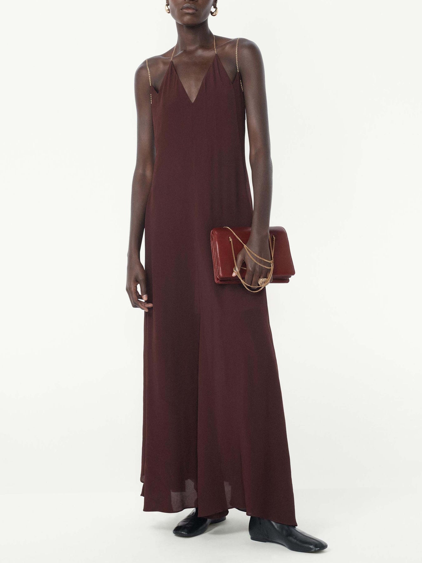 Elegant Chain-Strap Deep V-Neck Maxi Dress