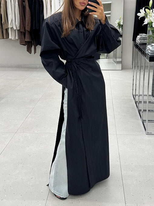 Casual Slit Cotton Shirt Maxi Dress