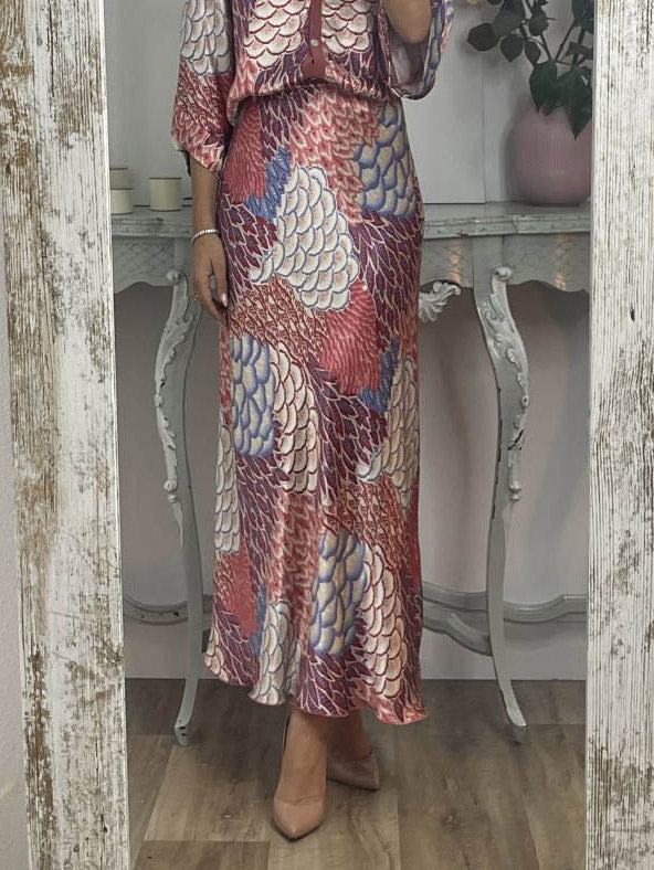 Make yourself the center of attention with our sophisticated satin floral print fishtail skirt, with an elegant fishtail silhouette that accentuates your curves. Perfect for a special occasion or an elegant evening.