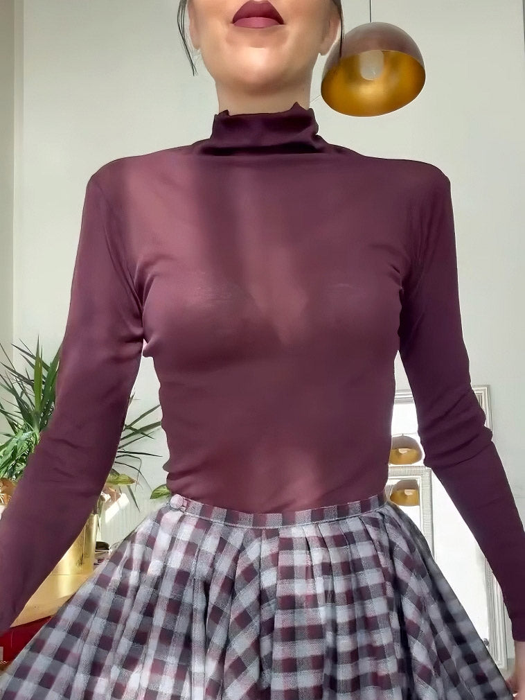 Elevate your everyday wardrobe with this elegant slim-fit turtleneck top. Crafted with a soft, stretchy fabric, it offers a smooth, body-hugging silhouette that highlights effortless sophistication. The long sleeves and clean lines make it a versatile essential—perfect for pairing with statement skirts, trousers, or layered looks.