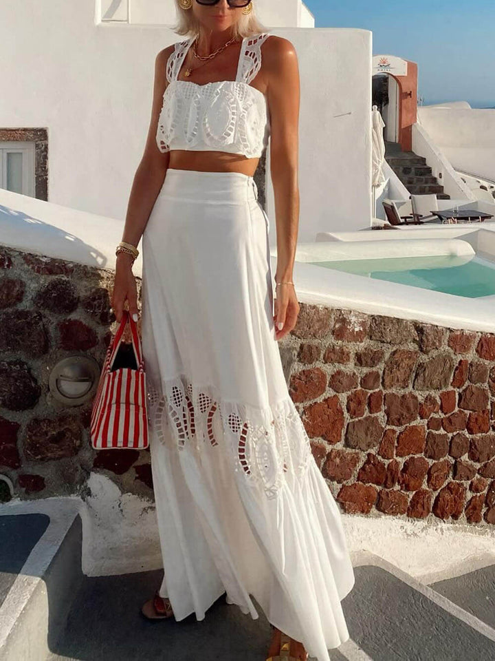 Elegant Lace-Panel High-Waist Maxi Skirt
