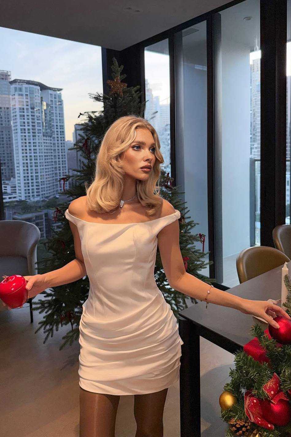 Off-shoulder Pleated Mini Dress