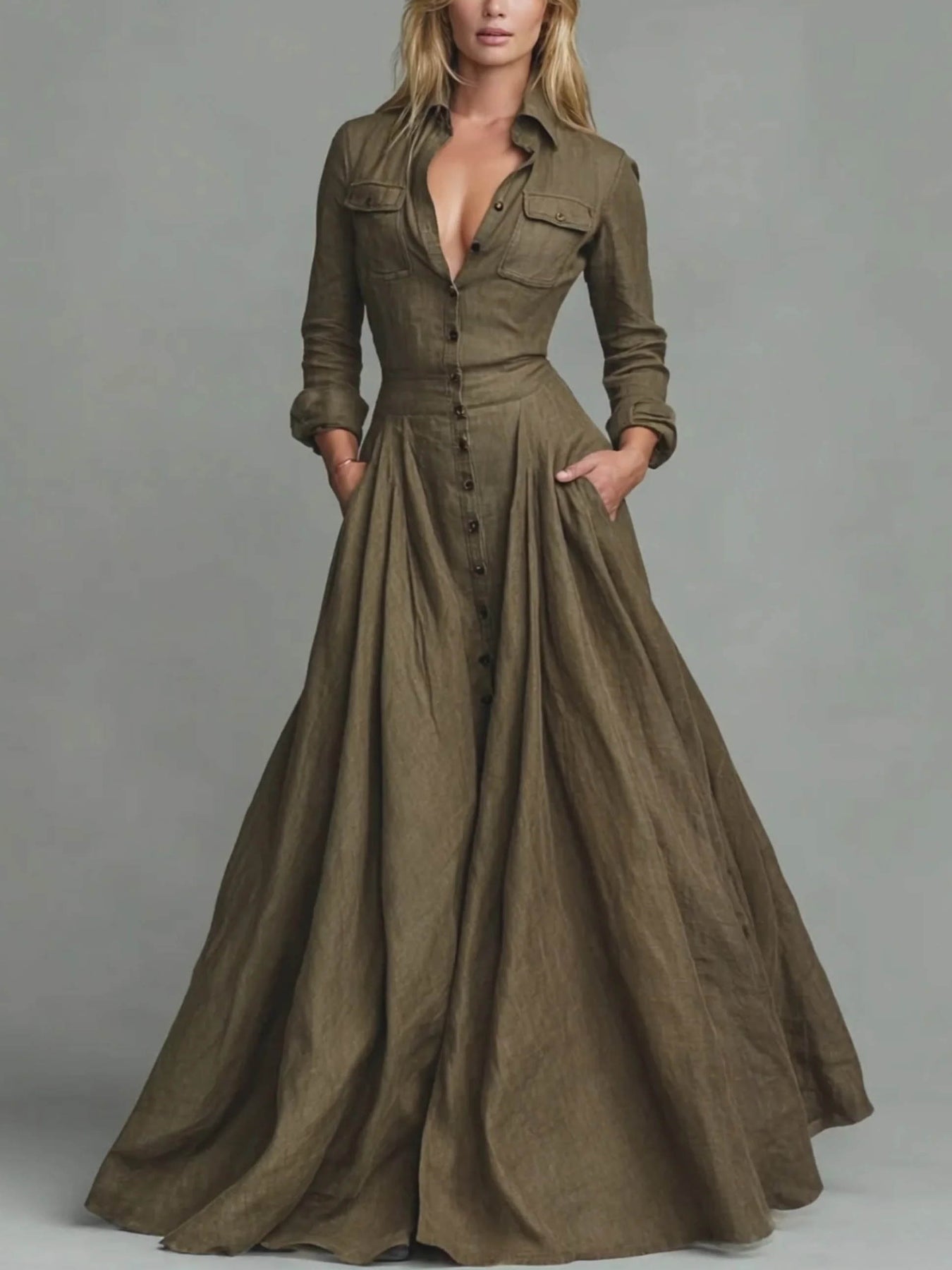 Embrace timeless charm with this retro shirt-style floor-length maxi dress. Designed with a classic button-down silhouette and a flowing full-length skirt, it blends vintage elegance with effortless comfort. Perfect for everyday wear, casual outings, or chic weekend looks.