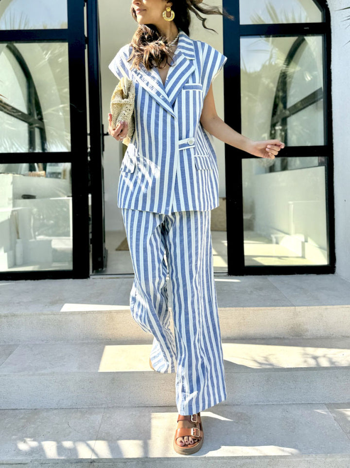 Designed with comfort and elegance in mind, the tailored silhouette and pinstripe stripes make them a versatile choice for both casual and semi-formal looks.