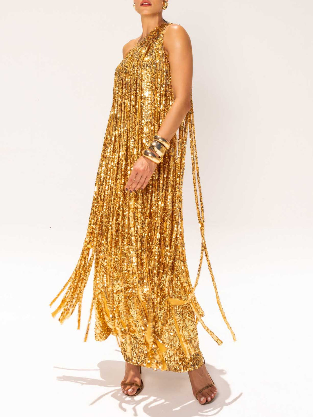 Elegant One-shoulder Neckline Tassel Sequin Maxi Dress