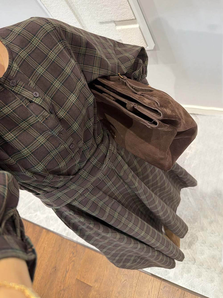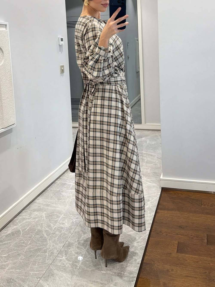 Elevate your wardrobe with our Vintage Plaid Print Belted Midi Dress. This timeless piece effortlessly combines classic style with modern flair. Pair with ankle boots for a chic daytime look or elevate with heels for evening events. Accessorize with statement jewelry to complete your ensemble.