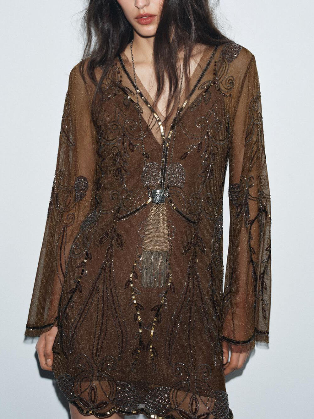 Exquisite Double-layered Mesh Printed Maxi Dress