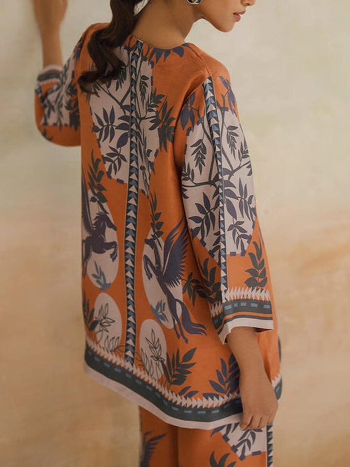 Boho-Inspired Ethnic Print Oversized Midi Shirt