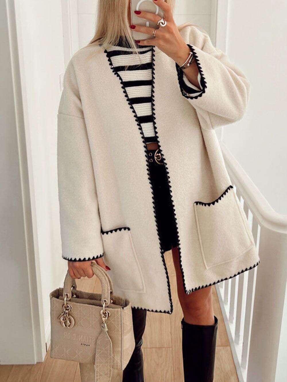 El "Abrigo de tweed de color en contraste de moda" es un diseño elegante y versátil que es perfecto para usar en capas. Con cuello en V, prácticos bolsillos y un corte cómodo, este abrigo es ideal tanto para el tiempo libre como para los desplazamientos. Proporciona calidez y al mismo tiempo mantiene una sensación de estilo, lo que la convierte en una excelente incorporación a tu guardarropa a medida que cambian las estaciones.
