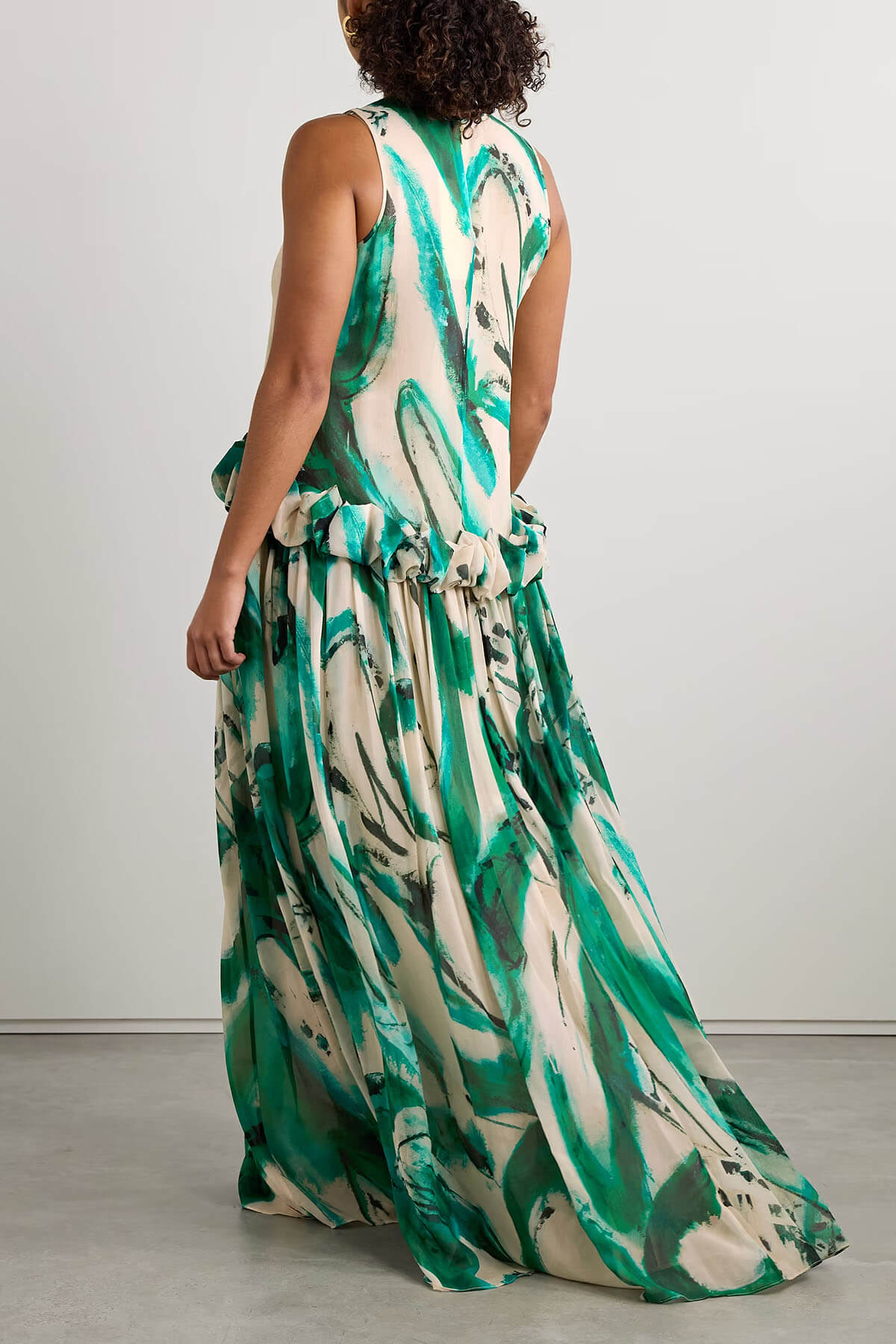 Exquisite Ruffled Print Satin Loose Maxi Dress