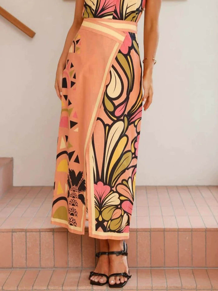 Unique Floral Print Hip-Hugging Cardigan Skirt