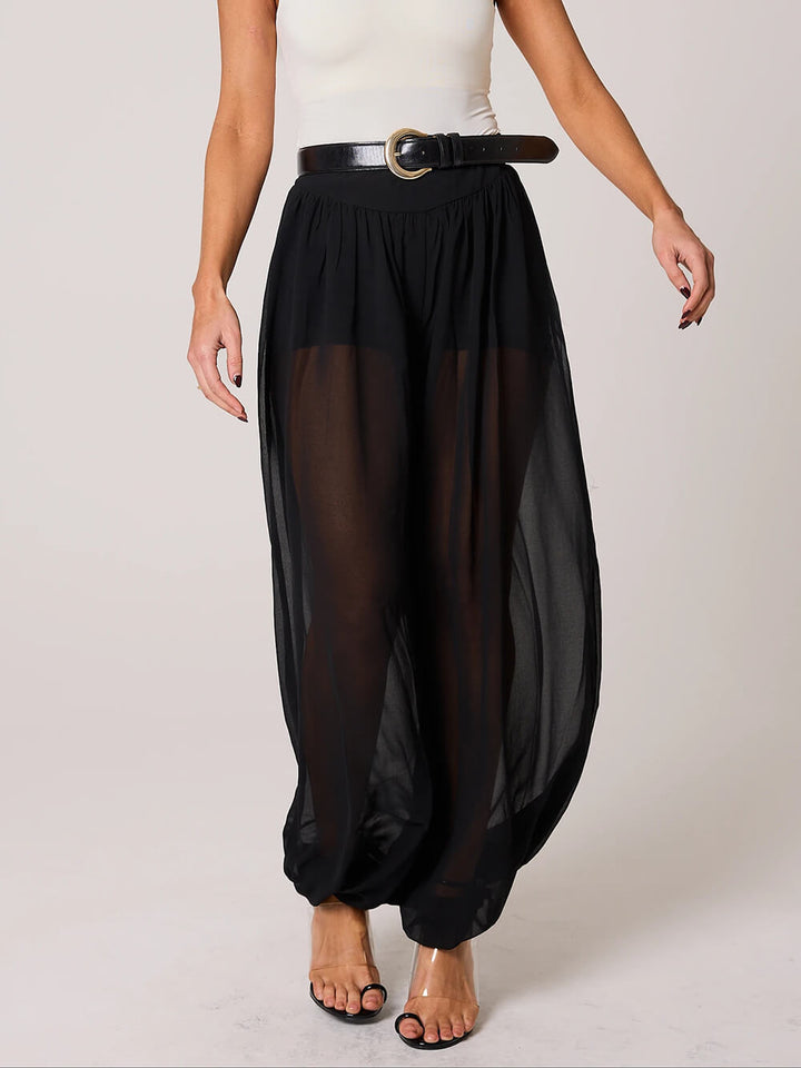 Classic Autumn Avenue Chiffon See-Through Elastic Waist Aladdin Bloomers Pants