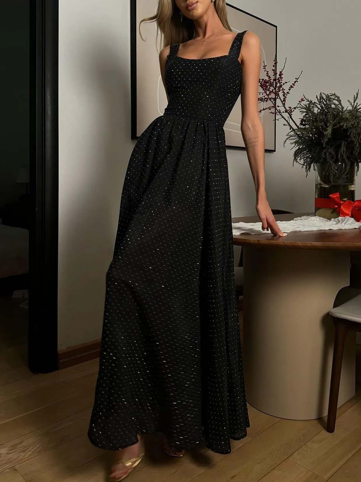 Vestido largo elegante con tirantes y lunares, ajustado, francés, sin espalda, INS