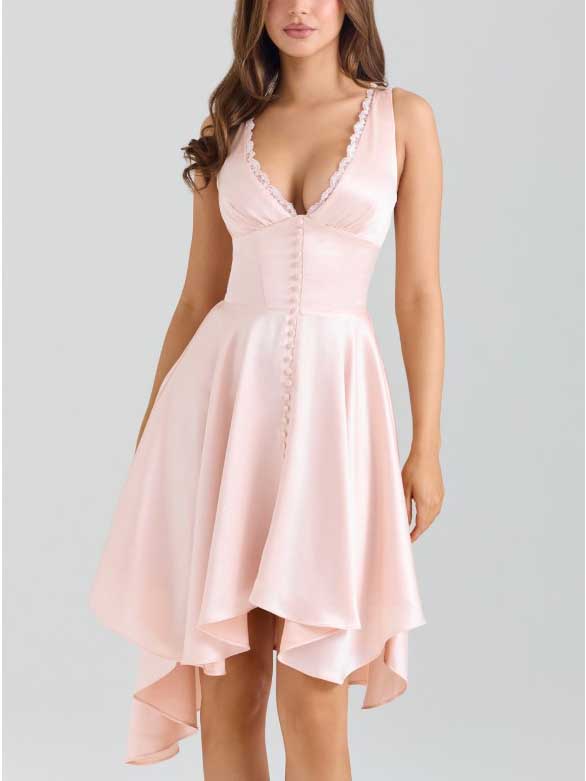 Minivestido exquisito y divertido con bolsillo con ribete de perlas
