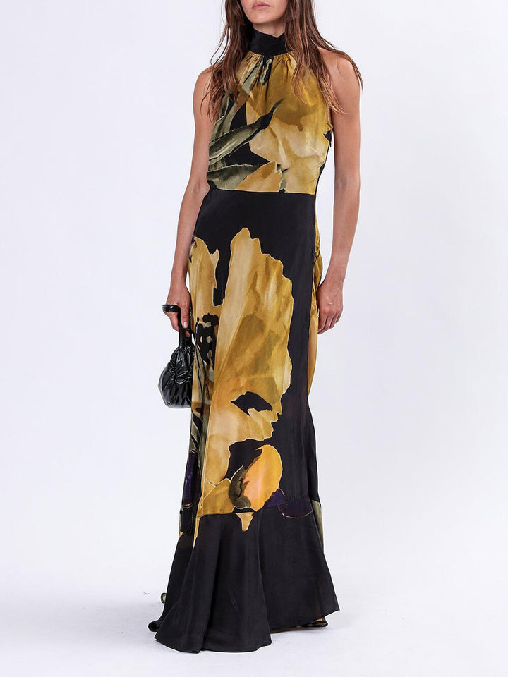 Unique Yellow Floral Print Straight Maxi Dress – Perfect for sunny days and casual gatherings, this bold floral piece brings effortless charm and standout style.