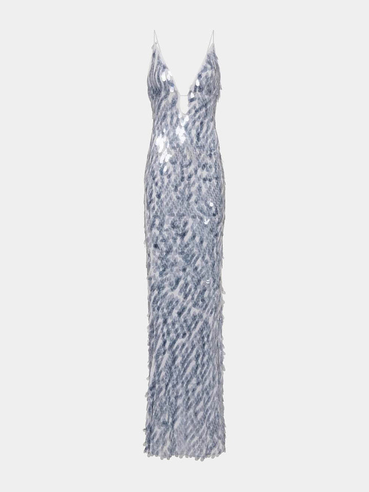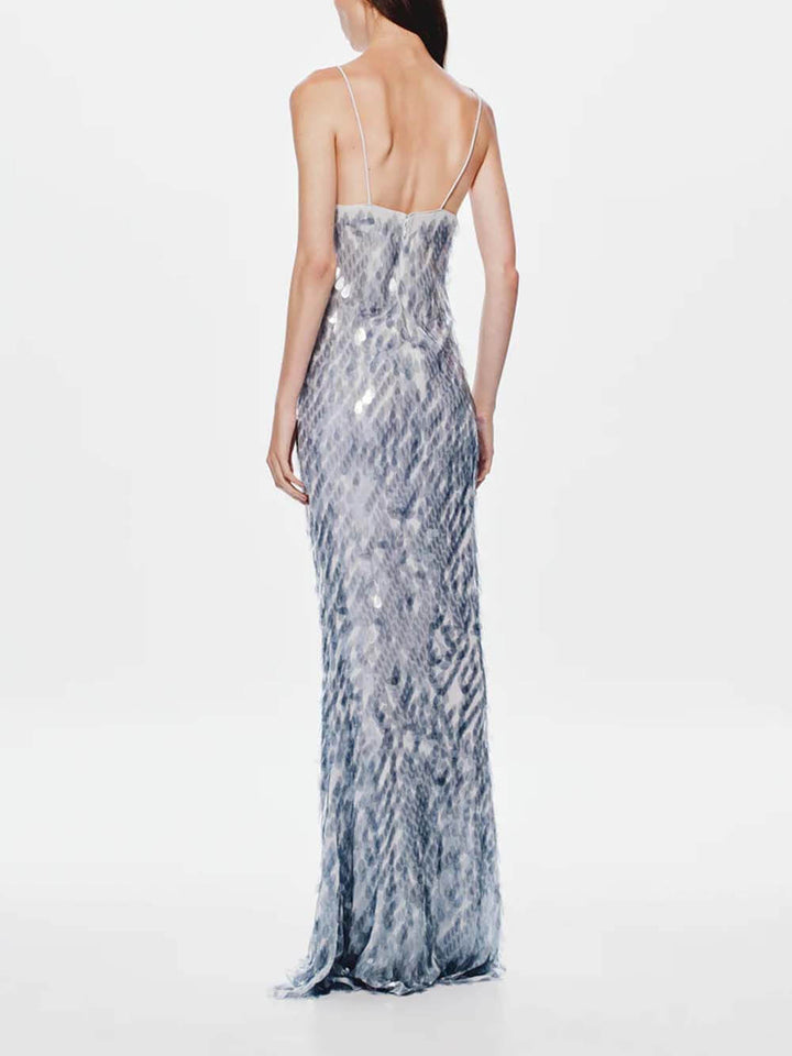 Elegant Sequined V-Neck Fitted Party Maxi Dress