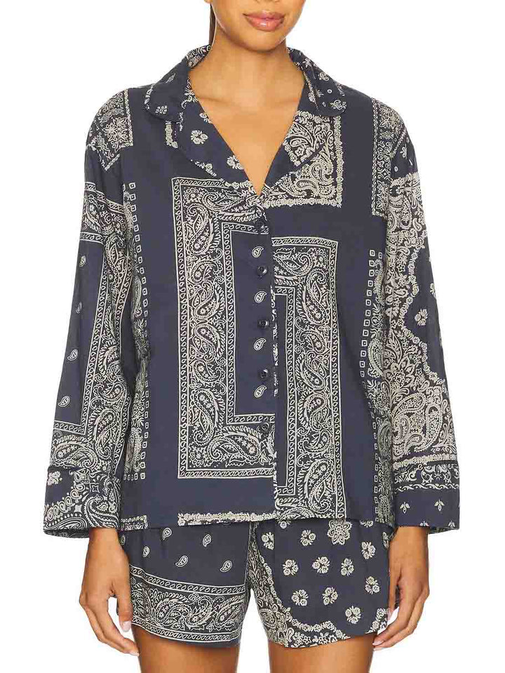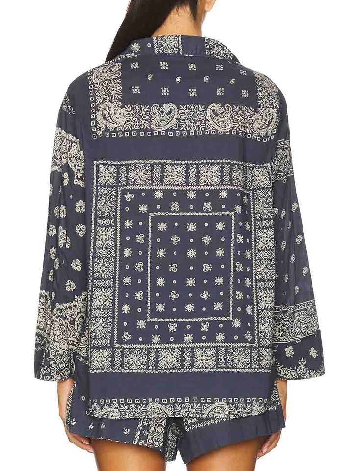 Retro Paisley Print Shorts And Long-Sleeved Shirt Two-Piece Set