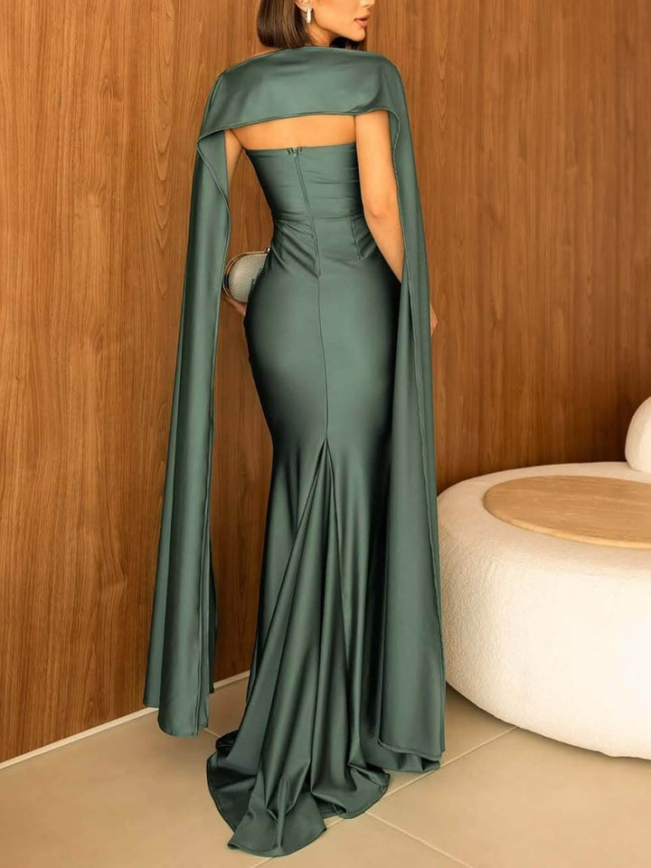 Elegant Strapless Cape Evening Maxi Dress