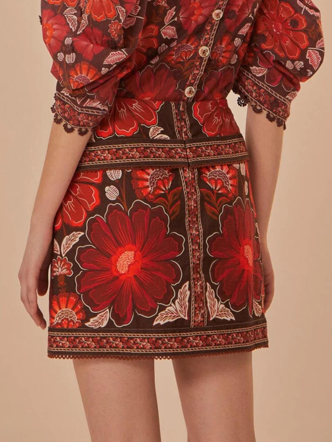 Pysy tyylikkäänä ja mukavana vintage-kukkakuvioisessa epäsäännöllisessä hameessamme.
