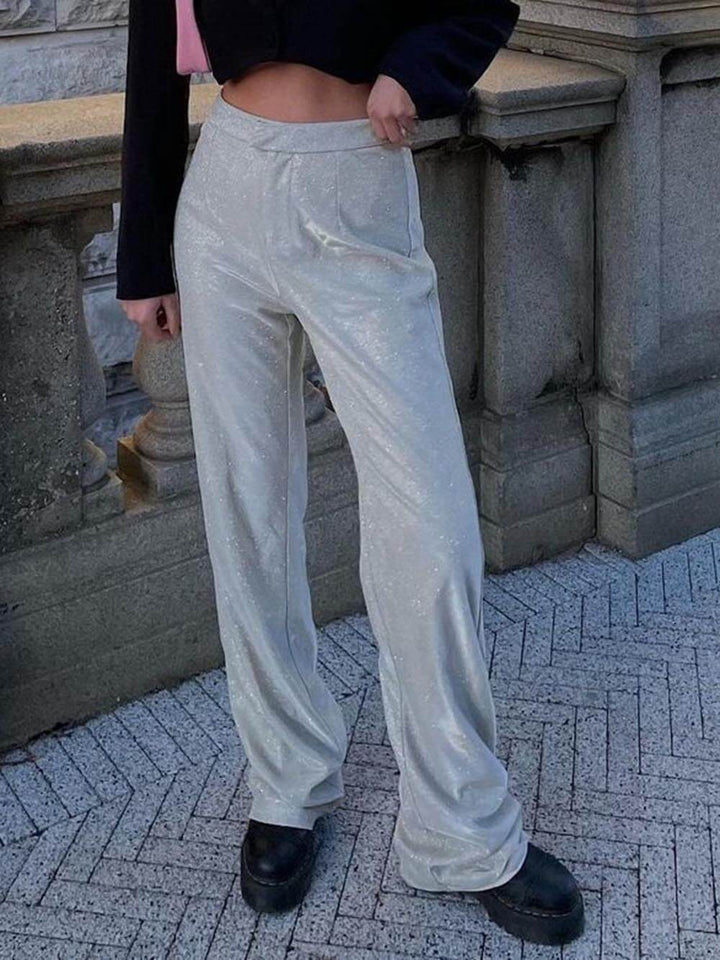 Ensiluokkaisesta kankaasta valmistetut housut ovat pehmeät ja hengittävät koko päivän käyttöön. Näiden housujen ainutlaatuinen paljettimuotoilu lisää ripauksen persoonallisuutta, kun taas löysä istuvuus varmistaa mukavan käyttökokemuksen.