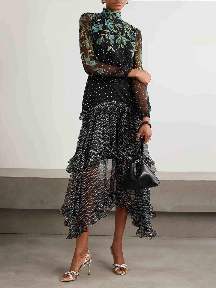 Exquisite Polka Dot Floral Print Ruffled Midi Dress
