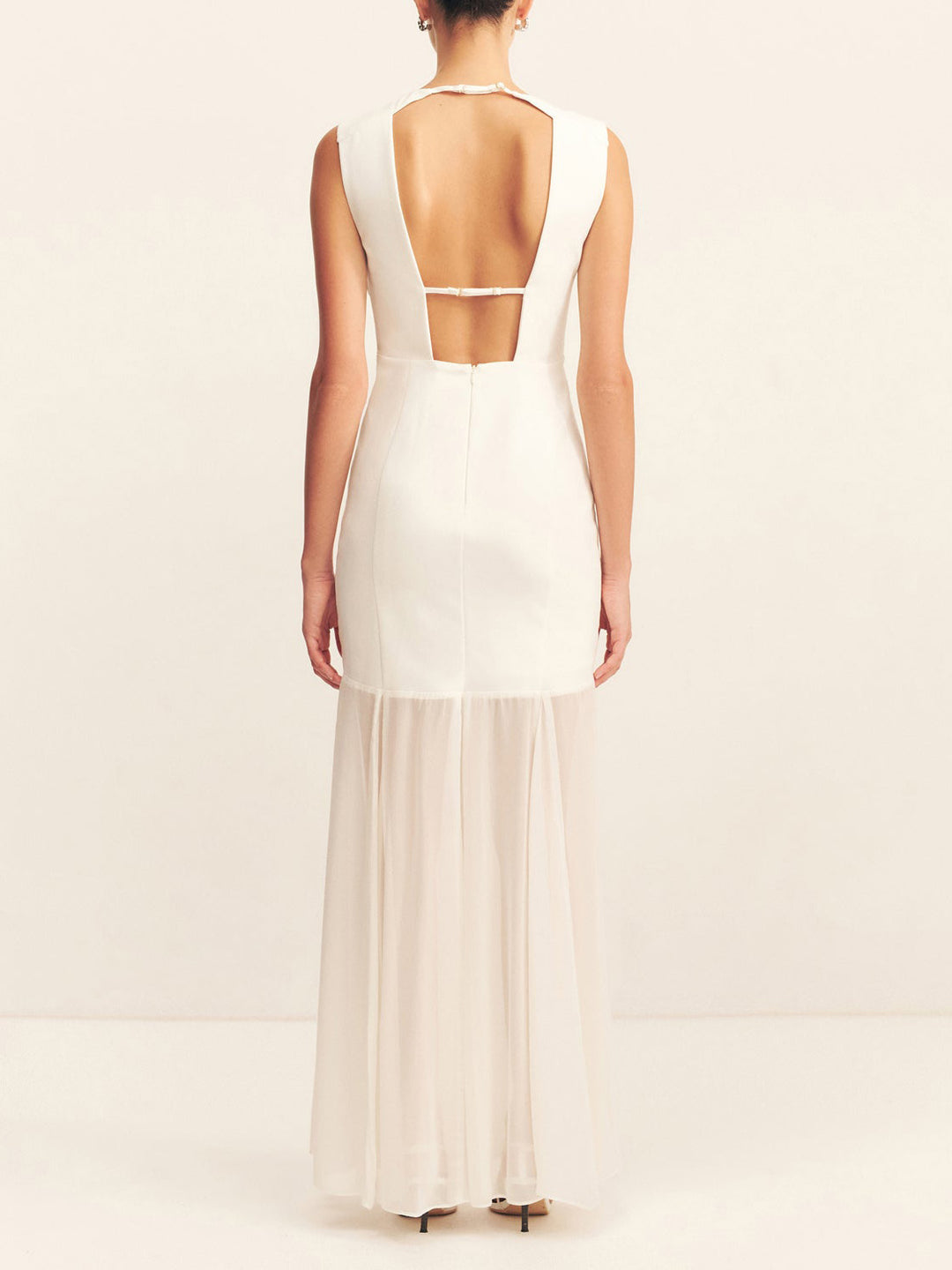 Elegance meets effortlessness in this draped maxi dress, with a fluid silhouette and flattering open back that perfectly blends sophistication with casual glamour.