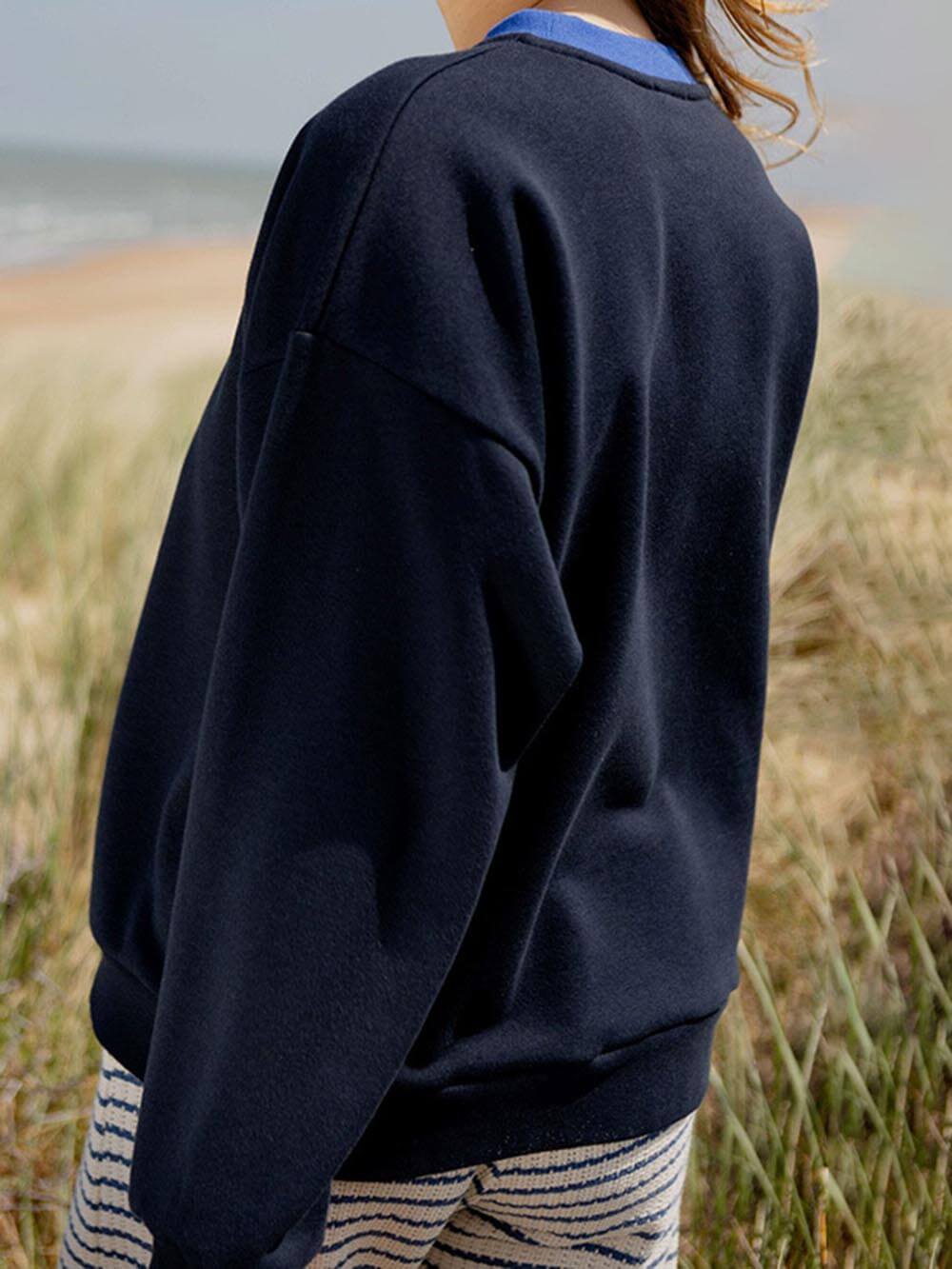 Sweat-shirt à col rond avec broderie de homard de style décontracté et amusant