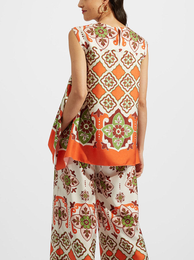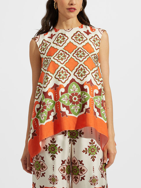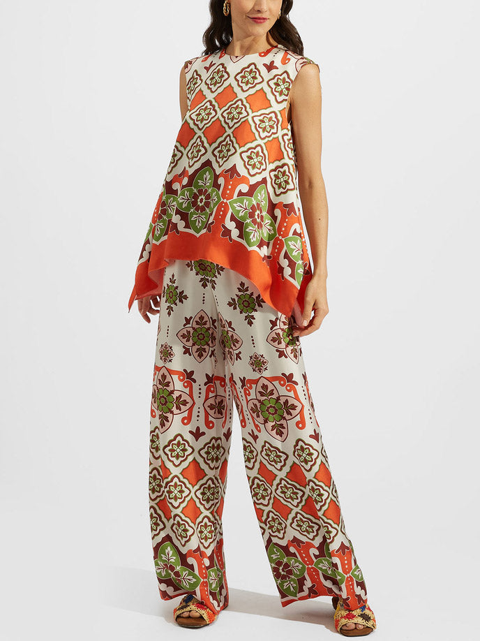 The vintage ethnic floral print exudes a bold, artistic vibe and is lightweight and breathable, making it the perfect piece for an effortless, casual look.