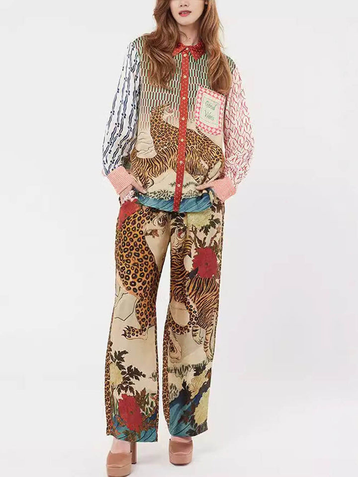 Unique Tropical Jungle Tiger Unique Print Long Sleeve Loose Shirt