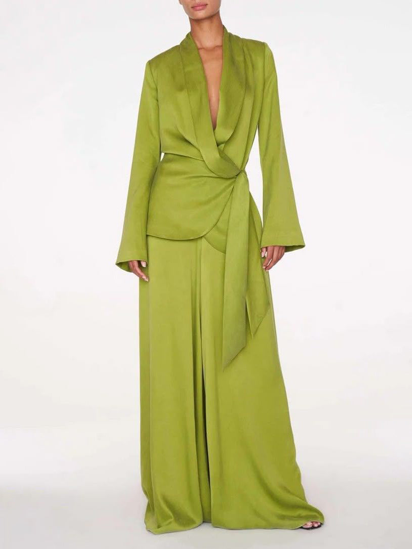 Flow with elegance in these satin wide-leg trousers designed for comfort and sophistication. Ideal for pairing with blazers or chic tops for both work and evening events.