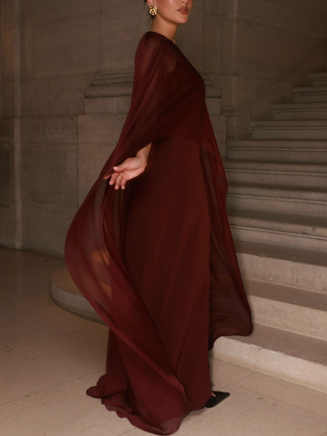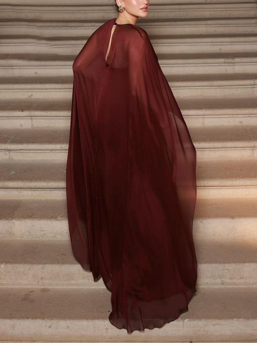 Elegant Sheer Cape Maxi Dress